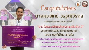 ขอแสดงความยินดีกับนิสิตสาขาวิชาดุริยางคศาสตร์ไทย ภาควิชาดนตรี จำนวน 5 คน ที่สร้างชื่อเสียงให้แก่คณะและมหาวิทยาลัย จากการเข้าร่วม การประกวดเดี่ยวเครื่องดนตรีไทยและขับร้องระดับชาติ “เสริมประสบการณ์สืบสานสังคีตศิลป์ไทย” ประจำปี พ.ศ. 2568