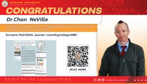 Congratulations Dr.Chon NeVille ตีพิมพ์ในวารสาร THAITESOL Journal วารสารใฐานข้อมูล ERIC