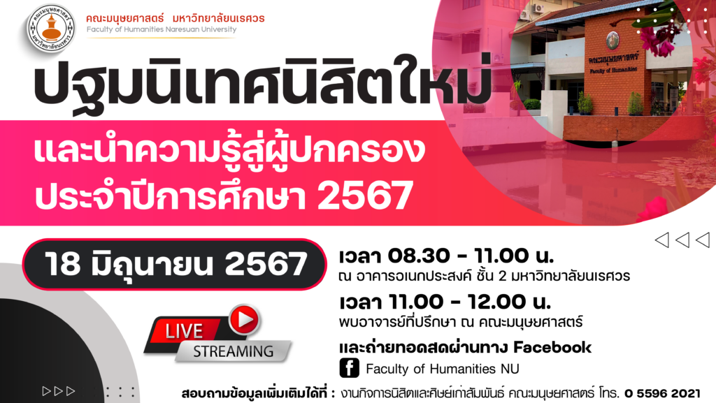 ขอเชิญนิสิตใหม่ คณะมนุษยศาสตร์ มหาวิทยาลัยนเรศวร ปีการศึกษา 2567