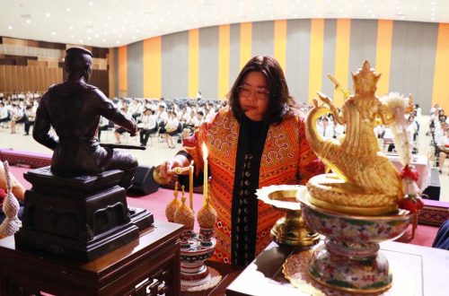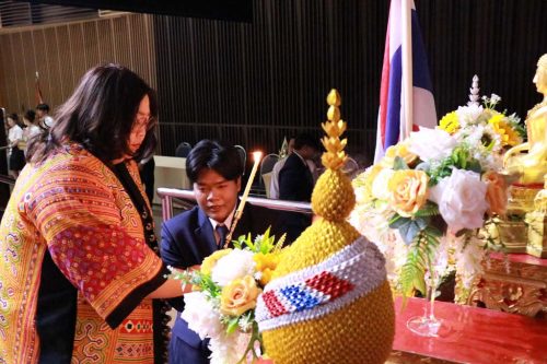 เมื่อวันที่ 3 กรกฎาคม 2568 ผู้ช่วยศาสตราจารย์ ดร.อรอุษา สุวรรณประเทศ คณบดีคณะมนุษยศาสตร์ เป็นประธานในพิธีไหว้ครูคณะมนุษยศาสตร์ ประจำปีการศึกษา 2568 พร้อมทั้งให้โอวาทแก่นิสิตทุกชั้นปี เพื่อเป็นขวัญและกำลังใจในการศึกษาเล่าเรียน ณ อาคารอุทยานองค์สมเด็จพระนเรศวรมหาราช (KNECC) มหาวิทยาลัยนเรศวร