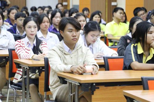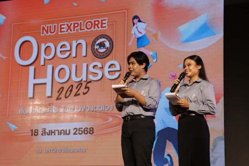 เมื่อวันที่ 18 สิงหาคม 2568 ดร.ภูริตา เรืองจิรยศ รองคณบดีฝ่ายกิจการนิสิตและศิษย์เก่าสัมพันธ์ คณะมนุษยศาสตร์ เข้าร่วมเป็นตัวแทนคณบดีคณะมนุษยศาสตร์ ในกิจกรรม Open House “ผนึกกำลังการสื่อสารเพื่อกลยุทธ์การตลาด” NU Explore : ค้นหาคณะที่ใช่ในแบบของตนเอง ณ โรงละคร อาคารเฉลิมพระเกียรติ 72 พรรษา บรมราชินีนารถ มหาวิทยาลัยนเรศวร โดยได้แนะนำข้อมูลหลักสูตร จุดเด่น และศักยภาพของคณะมนุษยศาสตร์แก่นักเรียนระดับมัธยมศึกษาตอนปลาย พร้อมทั้งชี้ให้เห็นแนวทางการเรียนรู้และโอกาสในการพัฒนาตนเอง เพื่อเป็นแนวทางในการเลือกเส้นทางการศึกษาที่เหมาะสมกับความสนใจของแต่ละบุคคล อีกทั้ง สโมสรนิสิตคณะมนุษยศาสตร์ ยังได้พานักเรียนที่สนใจศึกษาต่อมาเยี่ยมชมและทำกิจกรรมในพื้นที่จริงของคณะ เพื่อสร้างประสบการณ์ตรงและความมั่นใจในการเลือกเรียนต่อ ซึ่งบรรยากาศกิจกรรมเต็มไปด้วยความสนุกสนานและการเรียนรู้อย่างสร้างสรรค์