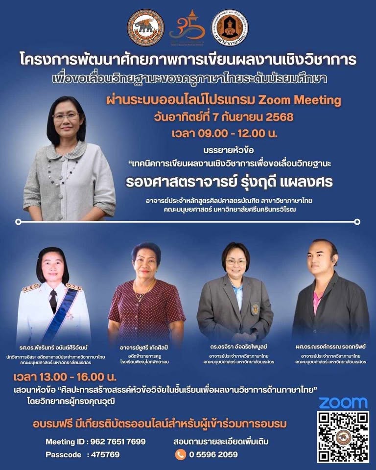เข้าร่วม โครงการบริการวิชาการ “พัฒนาศักยภาพการเขียนผลงานเชิงวิชาการเพื่อขอเลื่อนวิทยฐานะของครูภาษาไทยระดับมัธยมศึกษา”