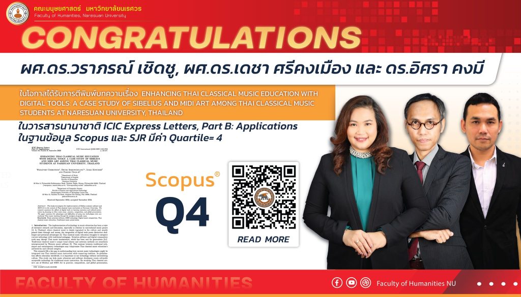 ขอแสดงความยินดีกับ ผศ.ดร.สราภรณ์ เชิดชู, ผศ.ดร.เดชา ศรีคงเมือง และ ดร.อิศรา คงมี ได้รับการตีพิมพ์ในวารสารระดับนานาชาติ ICIC Express Letters, Part B: Aplications อยู่ในฐานข้อมูล Scopus Q4