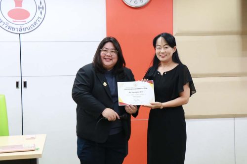 November 13, 2025 —- Faculty of Humanities, Naresuan University organized a foreign lecturers meeting for the second semester of the 2025 academic year at Room HU 2306. The event served as a platform for communication, progress updates, and the promotion of effective academic collaboration. Asst. Prof. Dr. Onusa Suwanpratest, the Dean of the Faculty, presided over the meeting and presented the faculty’s strategic directions and administrative plans. She also engaged in an open discussion, addressing questions and exchanging views with international faculty members.