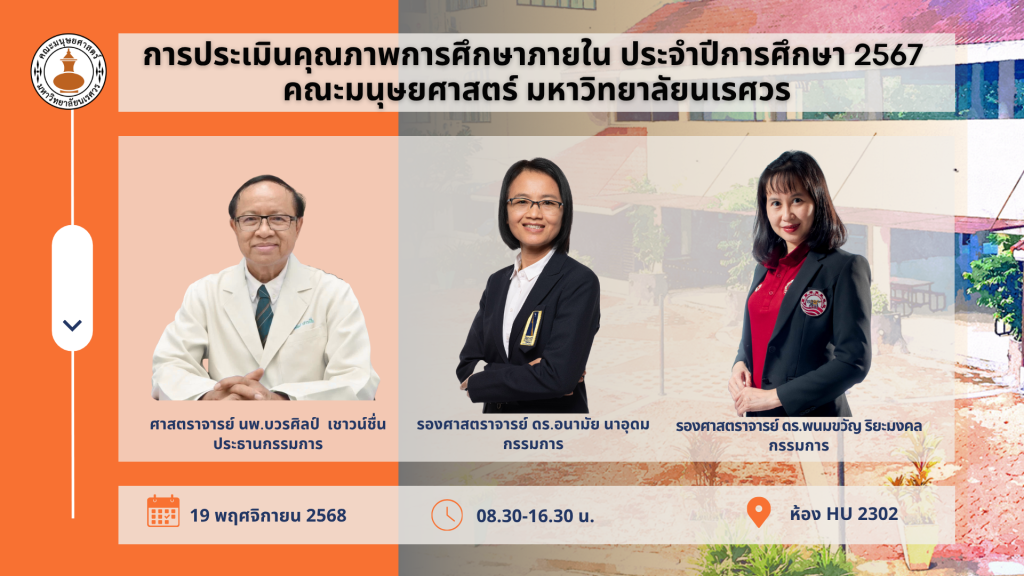 การประเมินคุณภาพการศึกษาภายใน ประจำปีการศึกษา 2567 คณะมนุษยศาสตร์ มหาวิทยาลัยนเรศวร