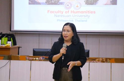 เมื่อวันพฤหัสบดีที่ 18 ธันวาคม 2568 ผู้ช่วยศาสตราจารย์ ดร.อรอุษา สุวรรณประเทศ คณบดีคณะมนุษยศาสตร์ มหาวิทยาลัยนเรศวร ให้การกล่าวต้อนรับคณะครูและนักเรียนระดับมัธยมศึกษาตอนปลายจากโรงเรียนเทศบาลเฉลิมพระเกียรติสมเด็จพระเทพรัตนราชสุดาฯ สยามบรมราชกุมารี จังหวัดตาก จำนวน 52 คน ที่เดินทางเข้าเยี่ยมชมและศึกษาดูงาน ณ ห้องประชุมสุวรรณภิงคาร คณะมนุษยศาสตร์ มหาวิทยาลัยนเรศวร ในการนี้ นักเรียนได้รับฟังข้อมูลเกี่ยวกับเกณฑ์การรับเข้าศึกษาและการแนะแนวการศึกษาต่อในหลักสูตรระดับปริญญาตรีที่คณะมนุษยศาสตร์เปิดการเรียนการสอน โดยมี ดร.นิภารัตน์ อิ่มศิลป์ รองคณบดีฝ่ายวิชาการ คณาจารย์ประจำหลักสูตร และตัวแทนนิสิตร่วมให้ข้อมูล แนะนำหลักสูตร ตลอดจนจัดกิจกรรมเล่นเกมแจกของรางวัล สร้างบรรยากาศแห่งการเรียนรู้ที่เป็นกันเองและสนุกสนาน